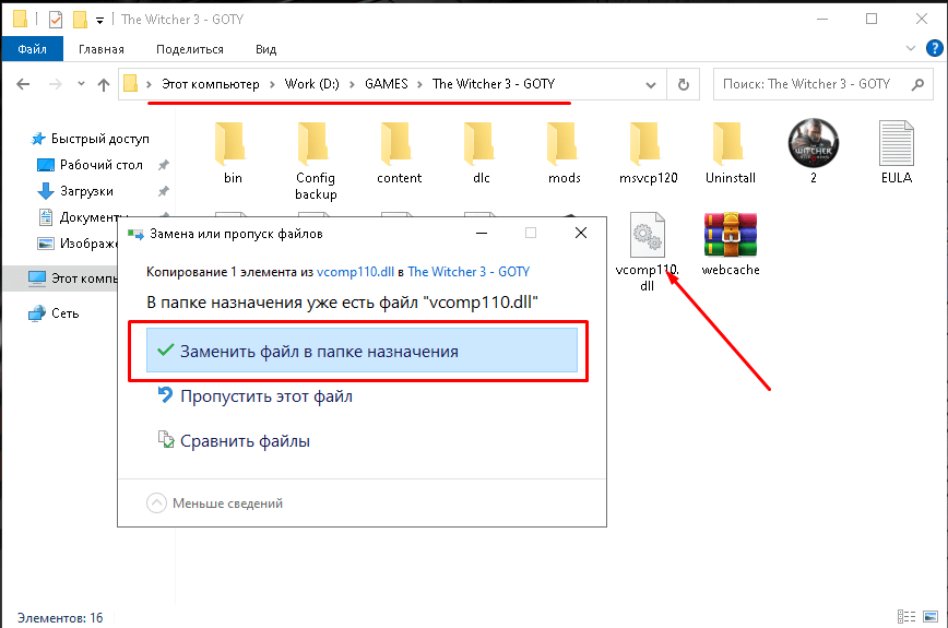 Многие игры предварительно проверяют наличие нужных библиотек и блокируют старт при их отсутствии. Так, если система не обнаружила vcomp110.dll, «Ведьмак 3» выдаст ошибку и не запустится.